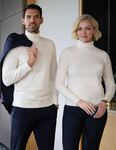 50% Merino Wool, 50% Cotton. Rollneck jumper, ribbed neck, cuff and hem.