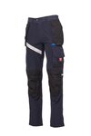 Unisex “4-way stretch” trousers with side elastics and belt loops, closure with zip and customised button. Two floating pockets in 500D Oxford Nylon inserted into the belt: one with a pen holder and tool band; one with a zip and pockets for storing tools. On the front they have two rounded pockets, a coin pocket on the right, a safety pocket with a zip on the left. On the front of the left leg there are 3 pockets: one horizontal with a zip fastening; one with a shaped flap with hook-and-loop fastener, equipped with a badge holder; a small vertical one with a zip fastening. A retroreflective stripe is visible on the right thigh. Both legs are equipped with a top-opening knee pad in Nylon Oxford 500D. On the back there are: a pocket with flap and hook-and-loop fastener, a hammer ring, an open tape measure pocket and a smartphone holder with flap and hook-and-loop fastener (right leg); an open pocket with two retroreflective stripes (left leg); retroreflective inserts at knee height and contrasting kick tapes for both legs. Side seam topstitching and contrasting bartack reinforcement stitching in various points. The middle (Italian) sizes 48-50-52 have an 82 cm regular internal leg length.